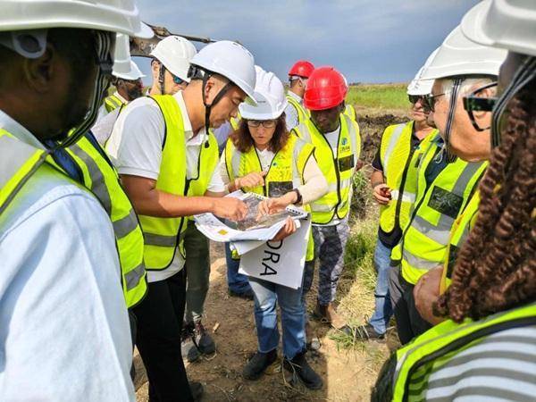 中方项目负责人与莫桑比克水务局技术官员讨论项目细节。“只有水流顺了,城市才能稳得住。”莫桑比克水务局的一位技术官员这样说。这种“贴着生活走”的设计理念贯穿始终。图纸上的调蓄池、闸门、桥梁,位置都经过反复推敲。河南国际不仅疏浚拓宽主干道,还将生态护坡、野生动物保护知识纳入施工考量,让工程与自然共生。
