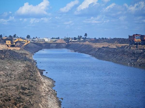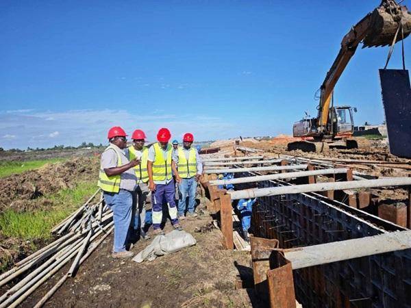 雨季的贝拉街道成河、农田淹没。转机始于一张水利水渠系统总平面图。在中国河南国际集团有限公司(以下简称“河南国际”)承建的贝拉水渠二期项目部办公室,这张平面图几乎占据一整面墙——蓝色的水系脉络如同城市的崭新血管延伸、分叉,连接社区、湿地与道路。“这不是一张普通的工程图,”项目经理说,“这是贝拉对抗内涝的‘作战地图’。”