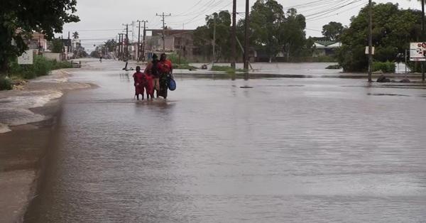 项目建设前,贝拉居民在雨季踩水出行。