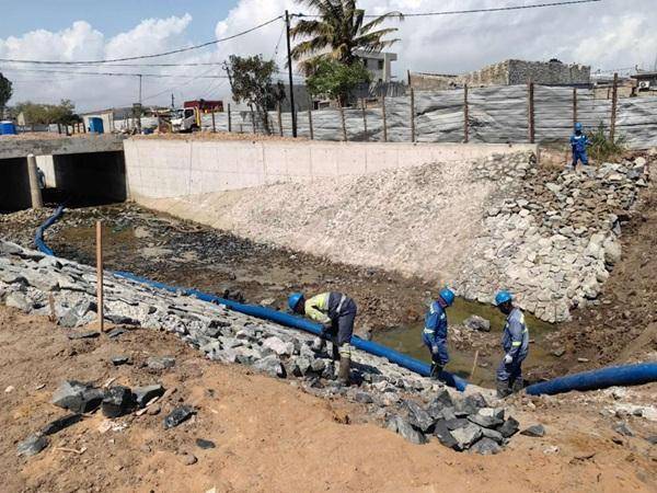 建造公路桥与人行桥。项目经理介绍,贝拉需要的不只是抢修,更是完整的城市水系治理方案。蓝图上的每一条线,都与一个家庭有关在图纸上一条标注为“社区箱涵”的线路尽头,住着玛丽亚大妈一家。过去,雨季意味着她家门前必定积水过膝,孩子上学需要人背。项目团队多次走进社区,听取像玛丽亚一样的居民意见。“他们真的改了设计,”玛丽亚指着不远处正在施工的涵洞说,“水会从这里更快流走,而不是堵在我家门口。”河南国际在项目设计阶段就组织了多轮社区沟通和村民听证会,反复修改桥梁涵洞布局、挡墙位置,尽量让水渠“贴着生活走”。这一系列工程被浓缩在整洁清晰的项目平面图中,它像一张城市血脉的重构图:蓝色水脉延伸至每个社区,连接湿地、道路和住宅区。